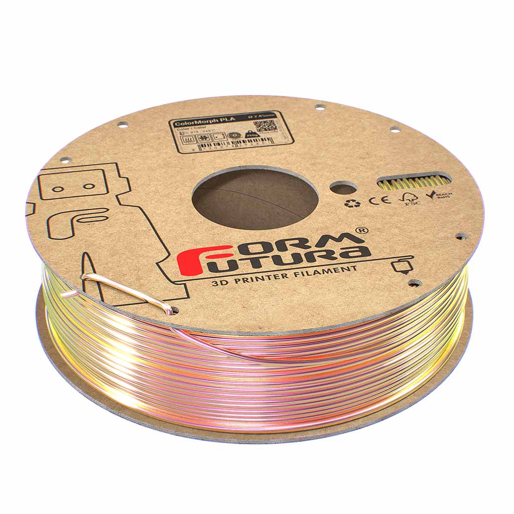 FormFutura High Gloss PLA – ColorMorph combines the best of two High Gloss PLA colors in one filament. This high-end filament combines all benefits of High Gloss PLA with innovative multicolor aesthetics.
